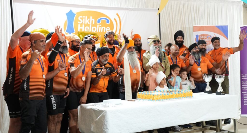 West Bromwich, 3rd August 2025 – The sound of cheering and heartfelt applause filled the air as 22 determined cyclists completed their 350-mile ride from Scotland to West Bromwich, raising vital funds for the Sikh Helpline — a free, confidential service offering support to those in crisis across the UK. The riders arrived at Gurdwara Guru Har Rai Sahib Ji on Saturday afternoon, where they were welcomed by the local Mayor, gurdwara representatives, community leaders and supporters who had gathered to celebrate this monumental achievement. The 5-day journey tested the endurance of every participant, but the riders’ spirits remained unshaken. Along the way, they inspired countless people to donate, share the cause, and understand the urgent need for the Sikh Helpline’s services — from mental health support and domestic abuse assistance to guidance on substance misuse and hate crime.